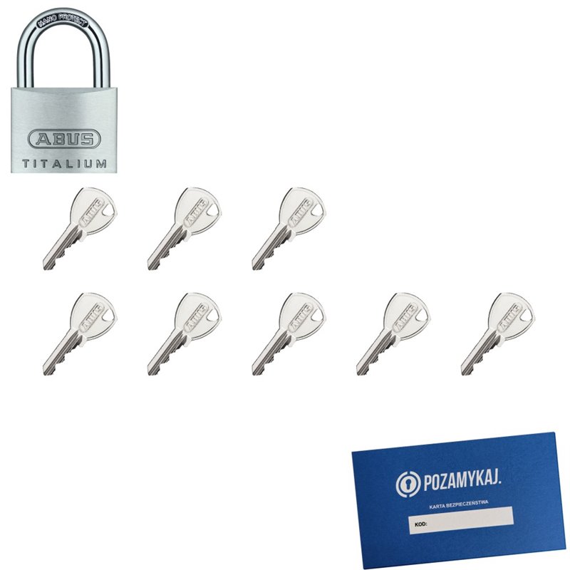 Jeśli kupisz kilka zestawów kłódek oznaczonych jako „ABUS TYTAN 40” (np. 1 kłódka + 10 kluczy i 1 kłódka + 20 kluczy), każda z tych kłódek będzie pasować do tych samych kluczy.