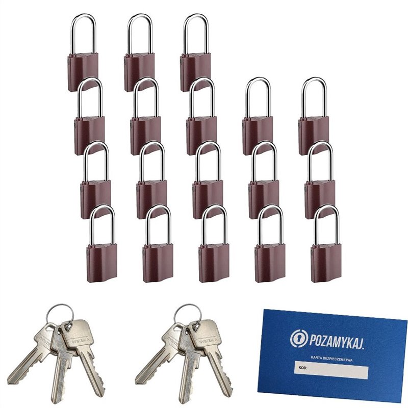 Zobacz polecane produktyKłódki z wydłużonym pałąkiem na jeden klucz 18 szt LOB K351