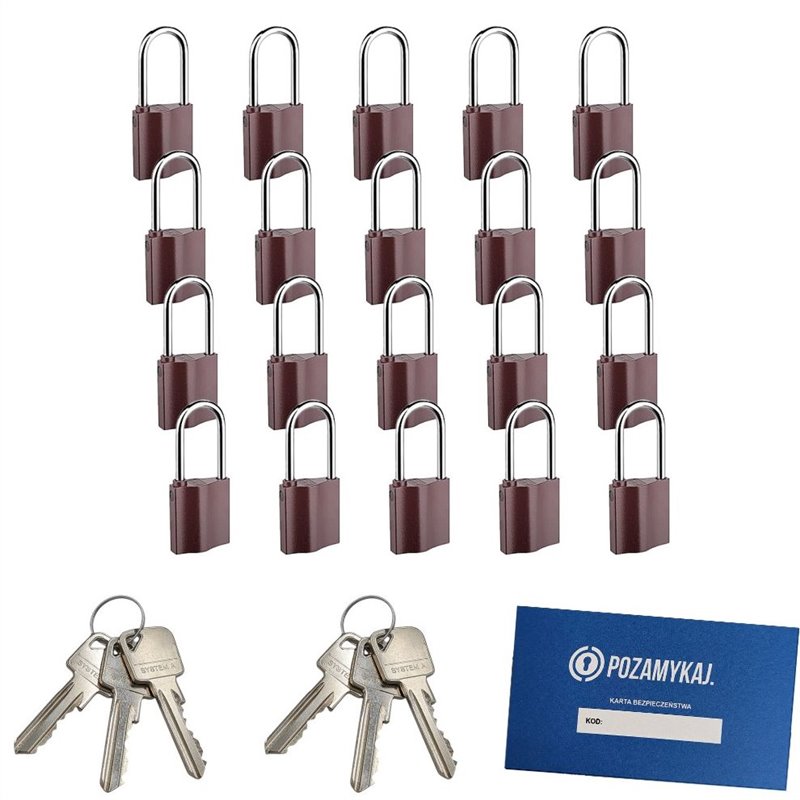 Zobacz polecane produktyKłódki z wydłużonym pałąkiem na jeden klucz 40 szt LOB K351