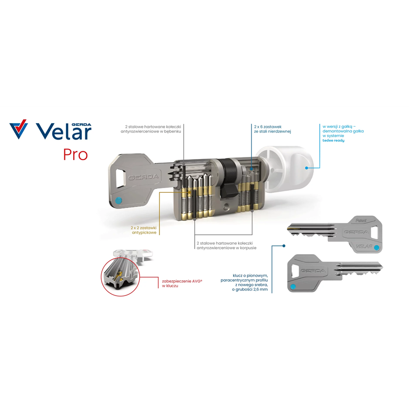 Zobacz polecane produktyWkładka bębenkowa z gałką Gerda Velar Pro 40G/45 System Master Key